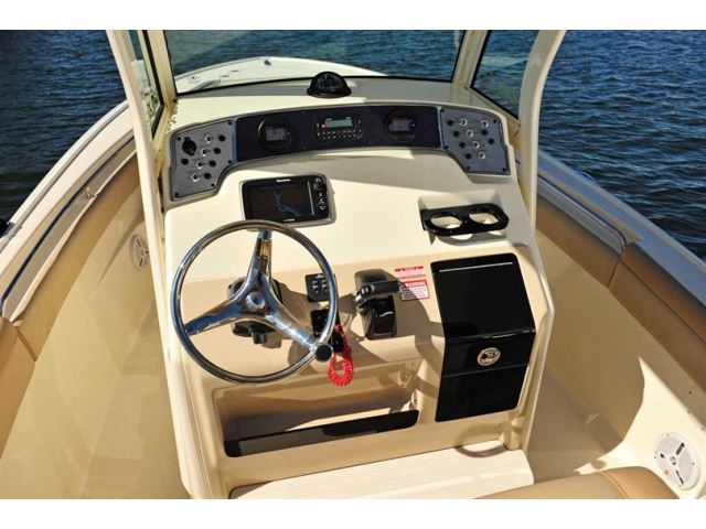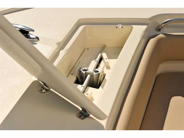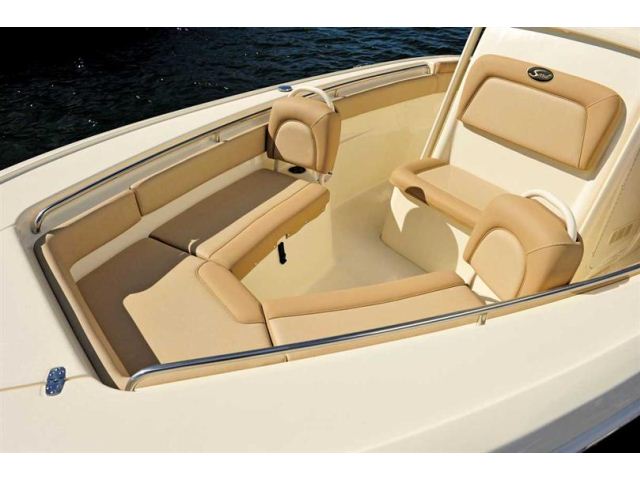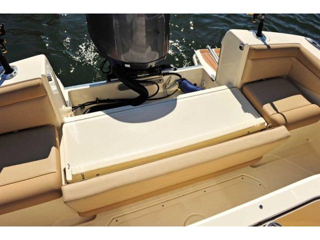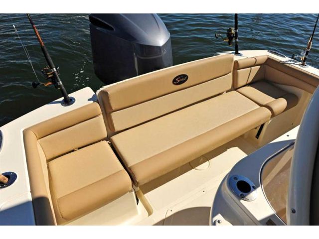 The new 225 XSF, a forward seating center console model with our revolutionary Nu-V3 high performance, fuel saving hull design, offers roomy forward seating port and starboard, bow bolsters and full bow cushion set, fully-finished storage boxes underneath, and optional removable forward seating backrest cushions. The center console has a comfortable console seat w/ cushions, grab rail and room for state-of-the-art electronics. An aerated leaning post bait well comes standard, but can be upgraded to an aluminum leaning post/console aerated bait well or a tournament leaning post aerated/recirculating bait well w/ tackle station and backrest. The 225 XSF also comes with Scout’s patented powder coated T-top hardtop and tempered glass enclosure as an added option to complement the numerous standard features, which also comes with rocket launchers and lights.