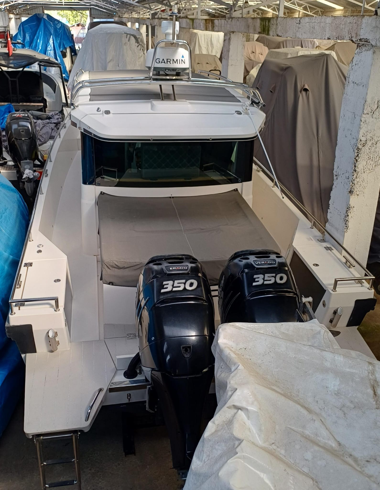 2x 350HP Mercury Verado L6: Süperşarjlı, yüksek torklu ve teknenizi 50 knot süratlere ulaştıran performanslı makineler.